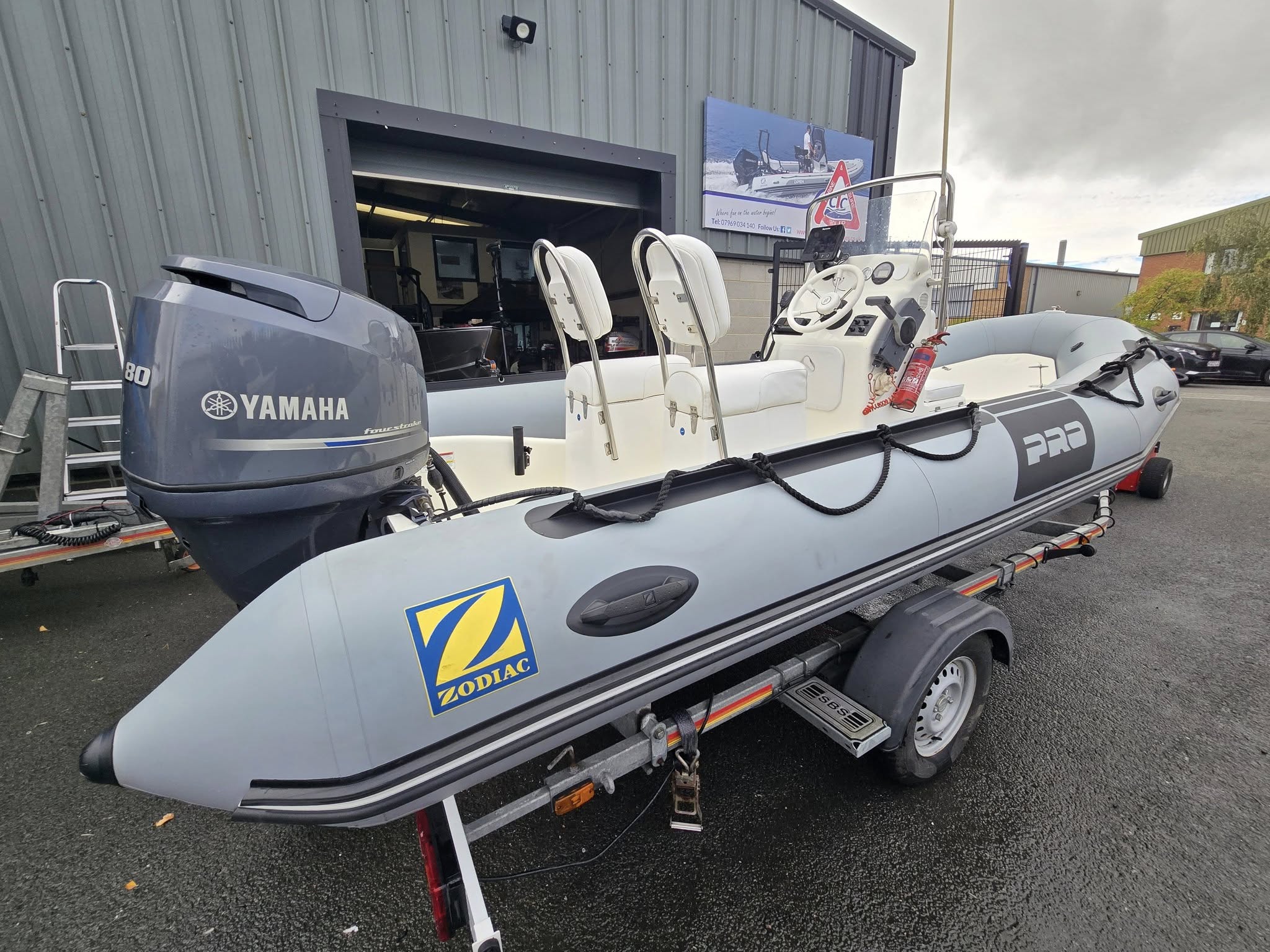 Zodiac Pro12 R.I.B. fitted with Yamaha F80BETL Efi 4-stroke outboard motor.